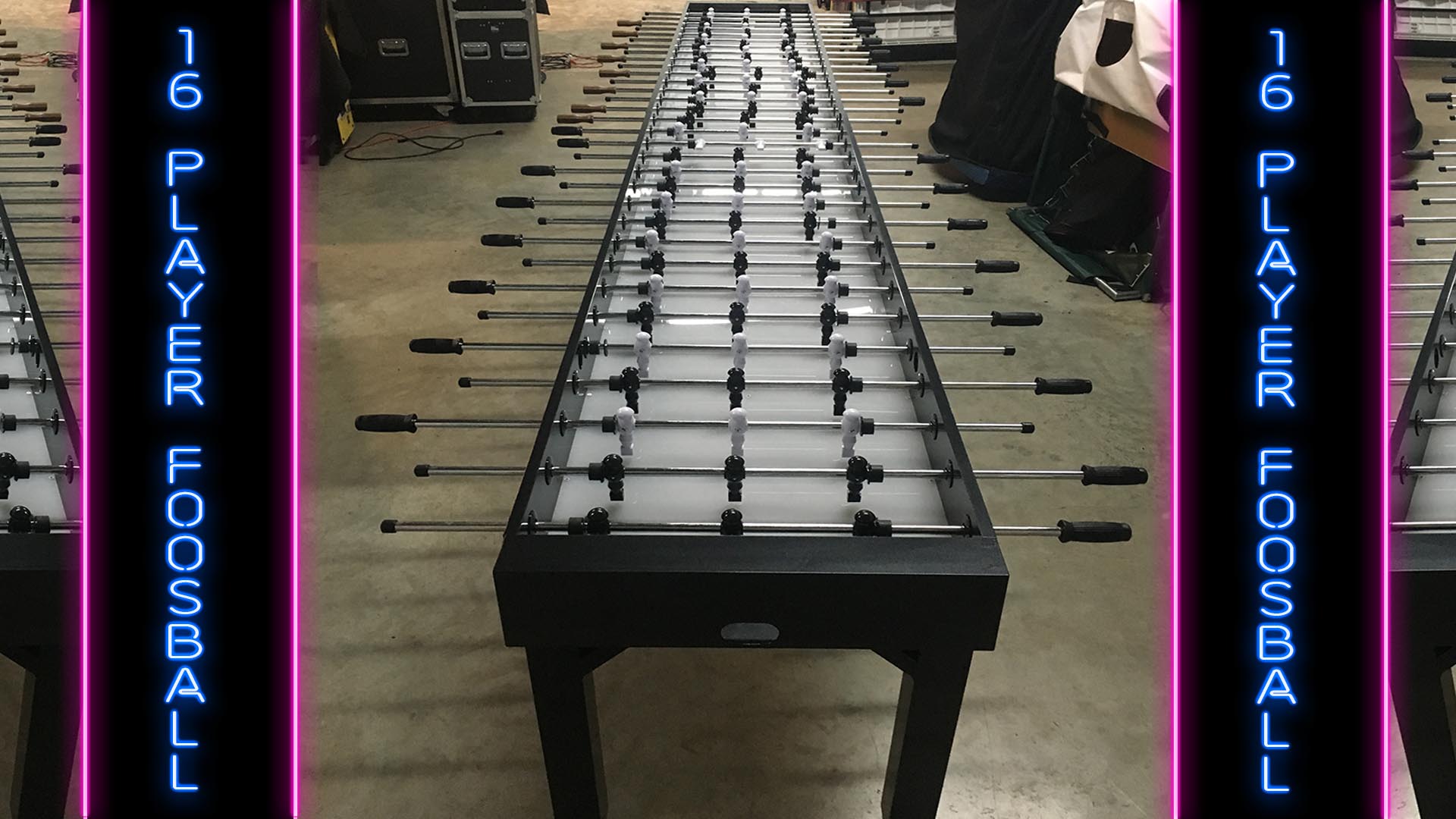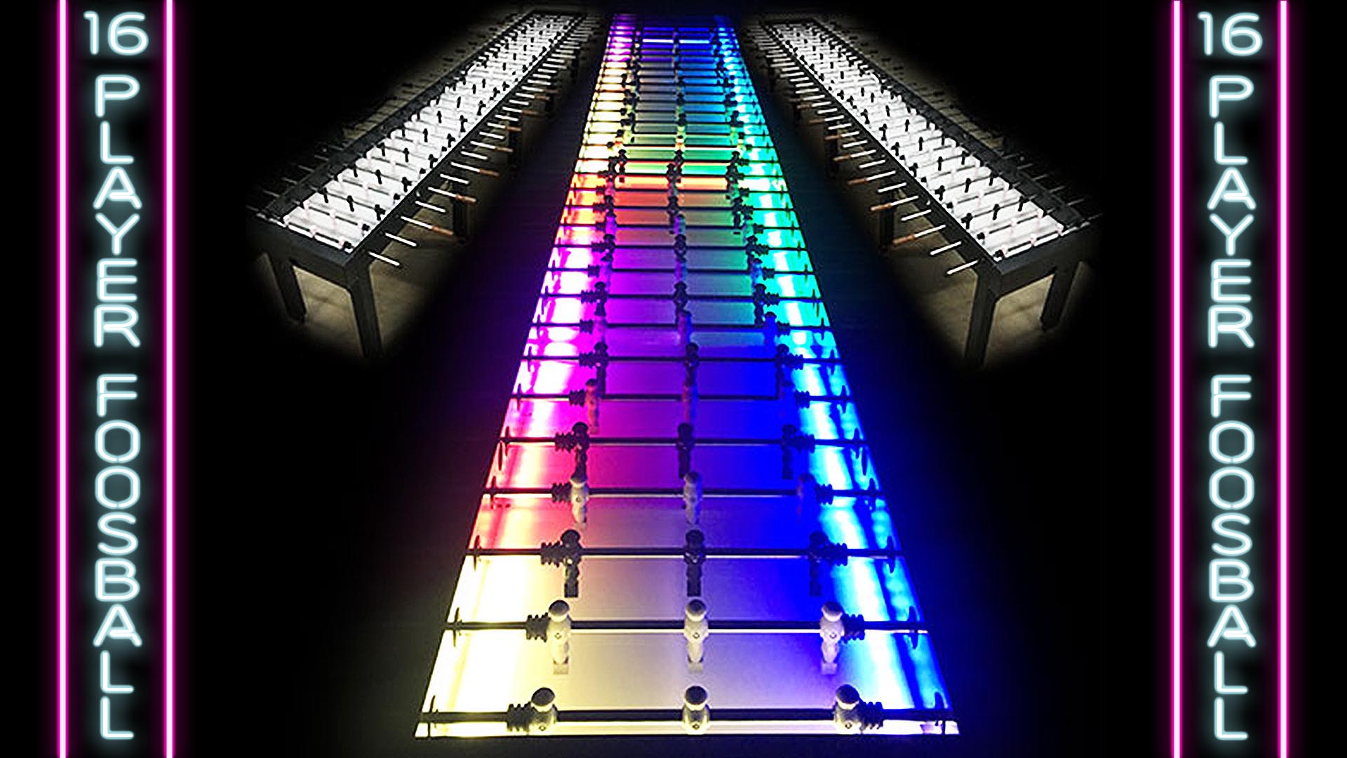 Our Custom Made Aluminum LED Foosball Tables Can Be Used As A Black & White Foosball Table (Lights Off), Or Turn The Lights On For Color Changing, Multi-Player, Foosball Madness! Fast-Paced Action For Up To 16 Players! More Players = More Fun! Play 3 Or More Balls For A Scoring Frenzy.
