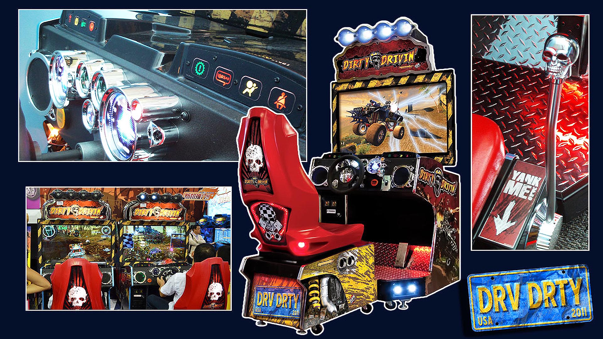 Dirty Drivin’ is an exciting racing game with a Hi-Def 42″ 1080p Display, Slick Attention-Grabbing Cabinet, 14 Outrageous Tracks, 11 Vehicles To Choose From, Power Ups, And 100’S Of Awesome Vehicle Upgrades And Achievements. Dirty Drivin’ Also Features A PIN Account System Which Allows Players To Enter Their Own Code To Save Their Progress. Dimensions 83″H X 42″W X 66″D 350lbs