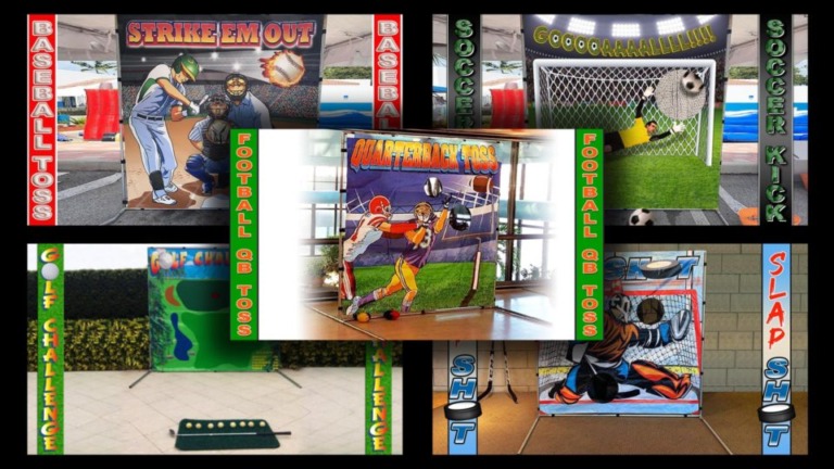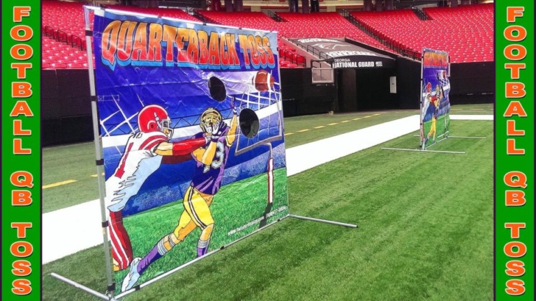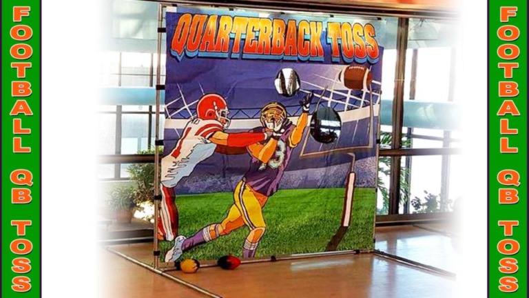 How accurately can you pass a football? This football game will test your throwing accuracy for bragging rights. Includes Colorful Canvas Backdrop (7′ X 7′), Soft Footballs, And Attendant.