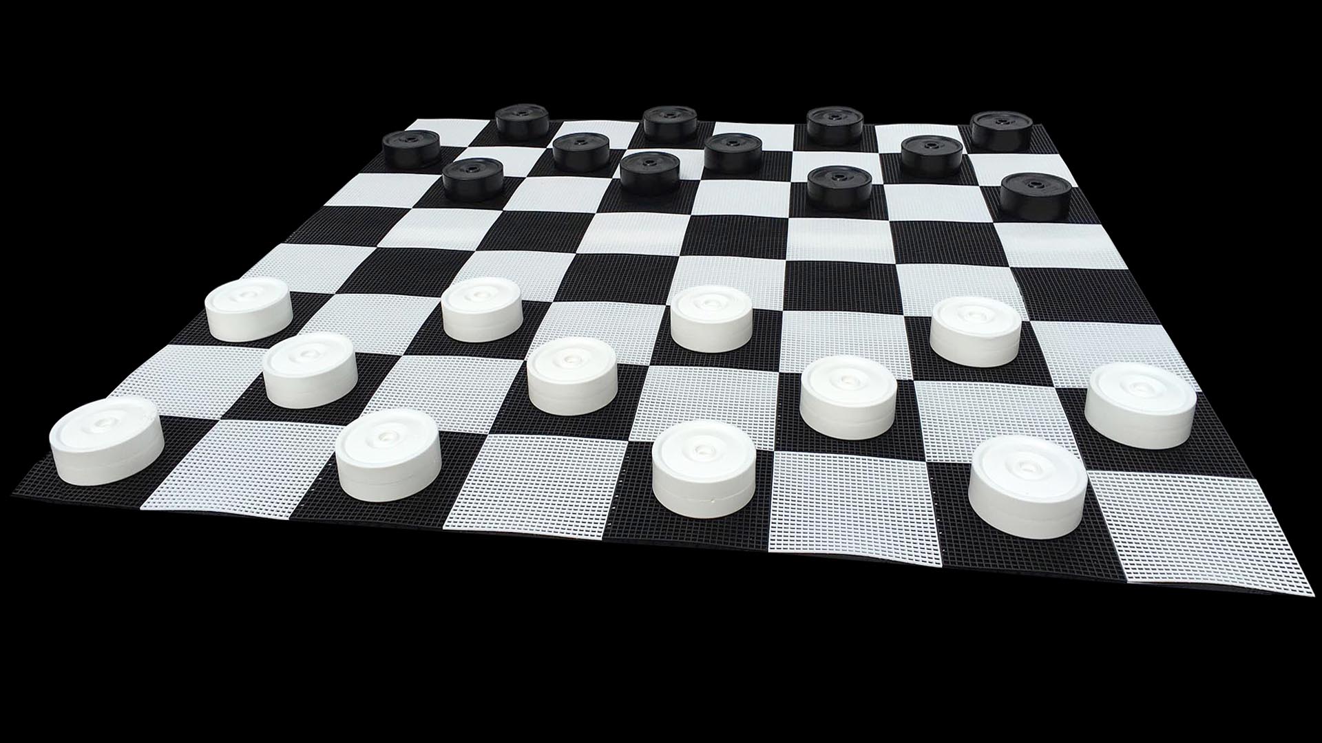Checkers- Board Size 10’X10′, 24 Pieces. (Each Checker Is 10″ Wide) Dimensions 10’L X 10’W