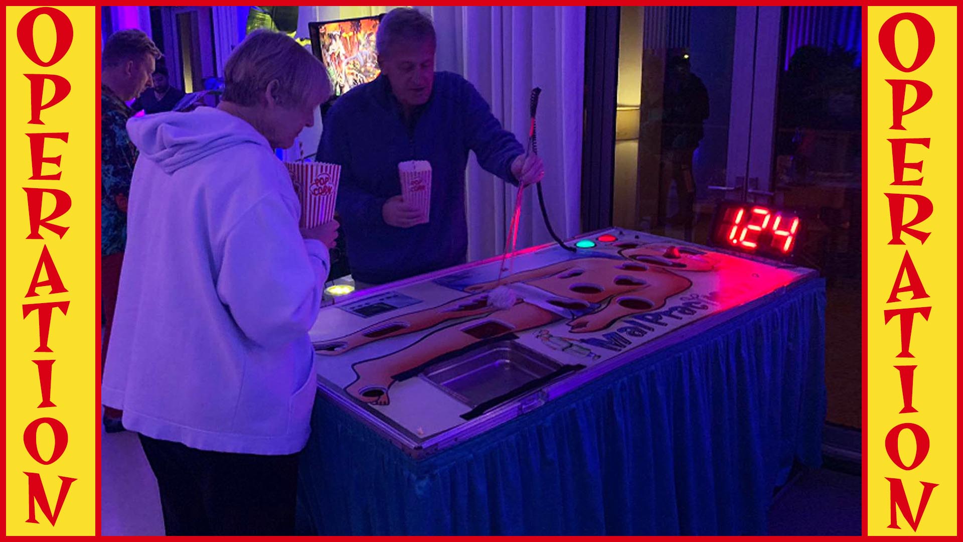 Giant Operation is a Premium Life Size Operation GameJust Like The Game You Played As A Child. Beware Of The Cheaper Knockoffs Some Companies Offer That Are Smaller In Size Or Have Less Features. This Patient Is 6′ Long And He Talks Along With Buzzing Sound Effects, LED Count Down Timer, 14 Crazy Body Parts To Remove, Oversized 18″ Tweezers, And Of Course The Nose Lights Up Every Time You Touch The Edges! This 2-4 Player Game Is Based On Which Player/Team Collects The Most Body Parts Without Hitting The Edges And Setting Off The Alarm! Every Guest Will Want To Try This At Least Once! This Game Has An Internal Battery As Well So It Can Be Set Up Without Access To Electricity. Click On The Link For More Information About Giant Operation. Click The Link To Return to Our Giant Games Page. Click Here for a Video Showing Our Giant Operation In Action.