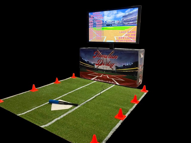 Includes attendant, 75″ TV, baseball bat, Astroturf, home plate, cones. Requires access to 110 electric within 100 feet.