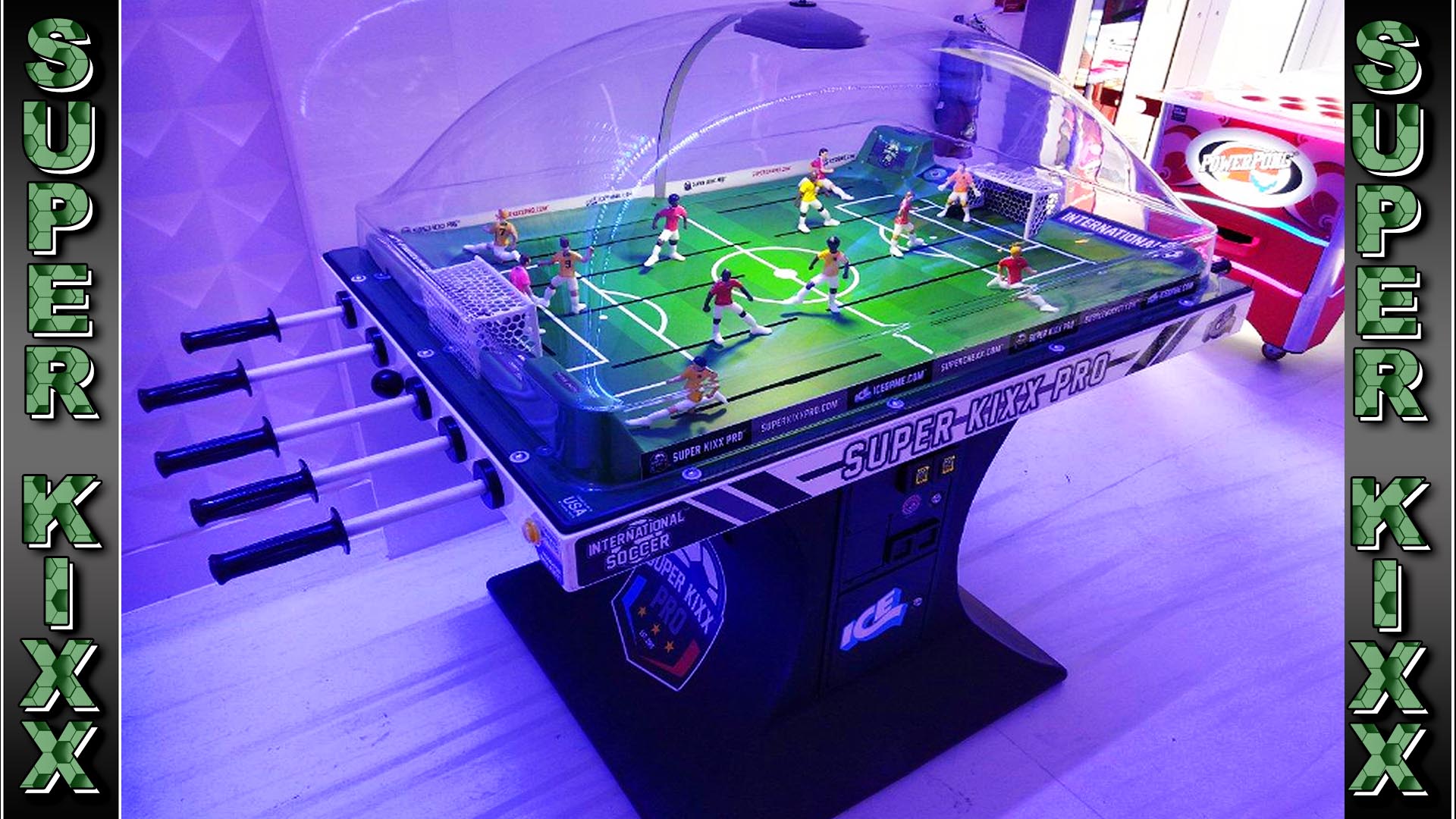 Super Kixx Pro Allows Players To Pass, Shoot, And Score Just Like The Real Game. Players Are Constructed To Allow For Chipping, Passing And Shooting. Automatic Ball Return System Within The Dome Makes The Game Tamper Proof So No Lost Balls Like The Cheaper Home Versions. 2 LCD Scoreboards Play Animated Sounds And Video, National Anthem, Crowd Chants, Sound Effects, & Score Display. When Players Score You’ll See & Hear GOOOAAAALLLL!!!!
